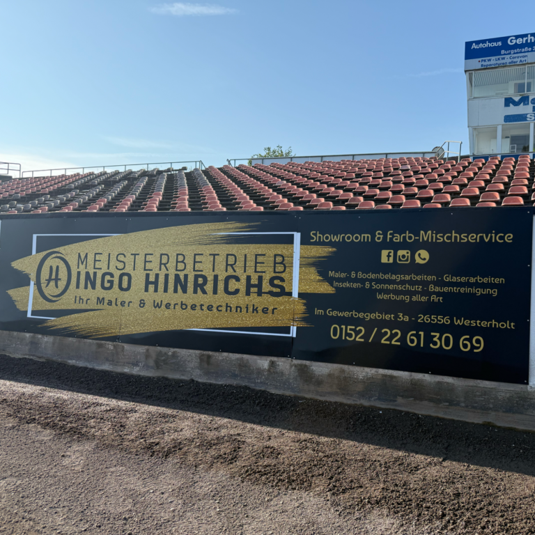 Entdecken Sie die breiten Möglichkeiten der Werbung mit Meisterbetrieb Hinrichs. Von Fahrzeugbeschriftung über Textilveredelung bis hin zu Werbeschildern – wir bieten alles, um Ihr Unternehmen ins beste Licht zu rücken.
